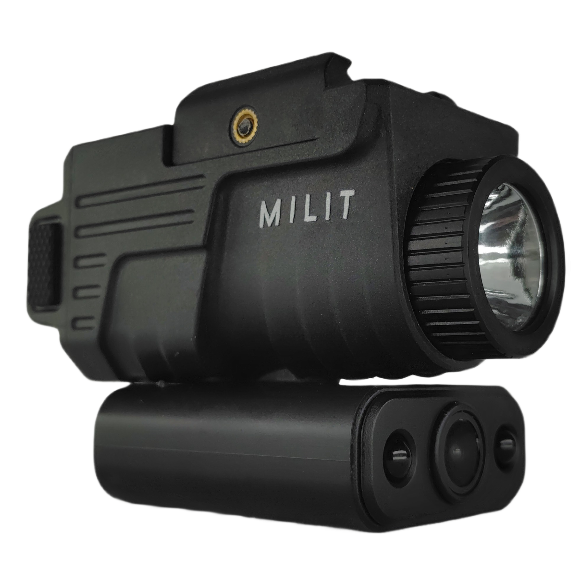 The Milit RailView™ Integrated Surveillance System is a compact, modular Picatinny rail-mounted surveillance camera system designed to deliver hands-free video recording, real-time WiFi monitoring, and low-light visibility in a single, unified platform. Engineered for standard 20mm Picatinny / Weaver rails, the RailView system integrates a 5MP WiFi camera, infrared night vision, two-way audio, and a rechargeable illumination module into a stable stacked design optimized for balance, durability, and ease of use.